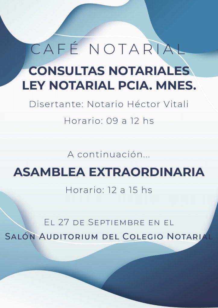 EL CONSEJO DIRECTIVO DEL COLEGIO NOTARIAL DE LA PROVINCIA DE MISIONES CONVOCA A NOTARIOS AUTORIZANTES A ASAMBLEA GENERAL EXTRAORDINARIA PARA EL DIA 27 de SEPTIEMBRE de 2019, EN LA SEDE UBICADA EN 25 de MAYO 1793 DE LA CIUDAD DE POSADAS, A LAS 12,00 HORAS PARA TRATAR EL SIGUIENTE ORDEN DEL DIA: