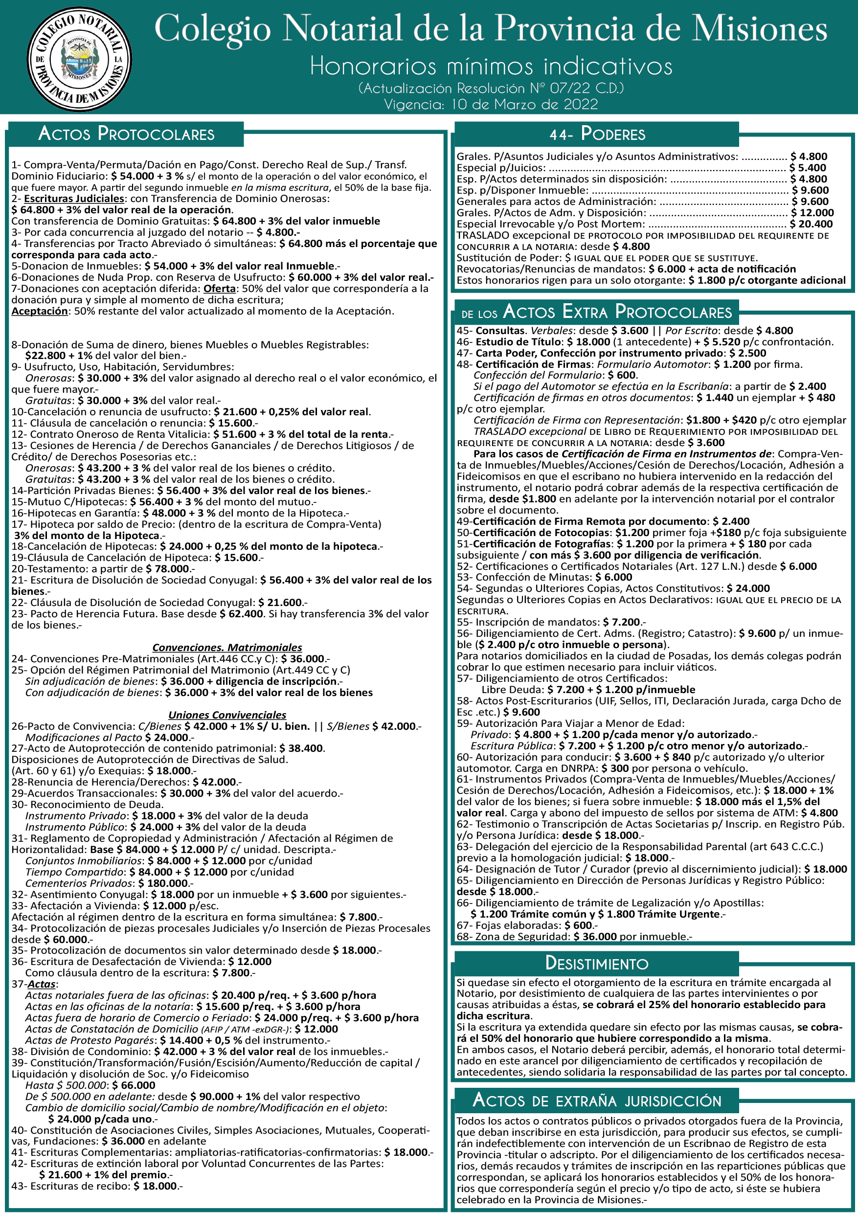 ARANCELES PARA NOTARIOS